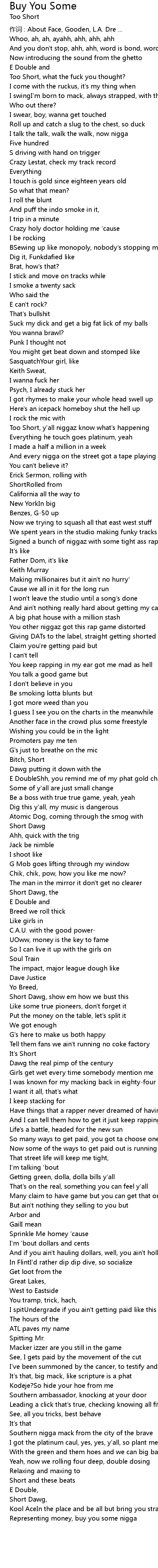 | Too Short, what the fuck you thought? | |