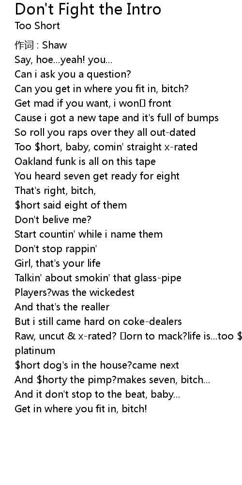 | Too hort, baby, comin' straight xrated | |