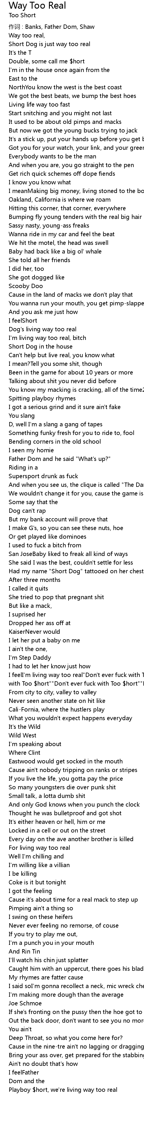 | I feelI' m living way too real" Don' t ever fuck with Too hort"" Don' t ever fuck with Too hort"" Don' t ever fuck with Too hort"" Don' t ever fuck with Too hort" | |