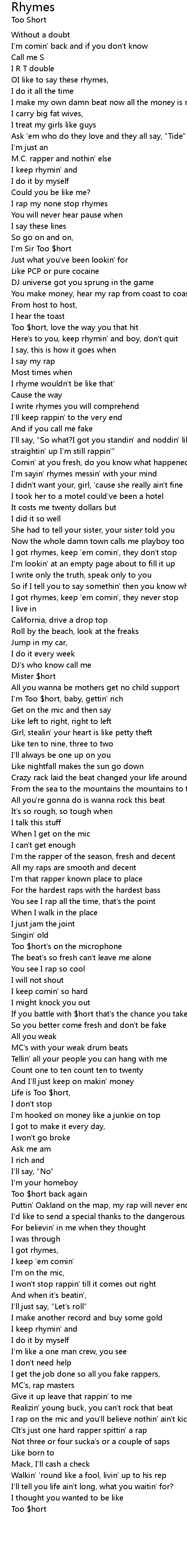 I'm Too $hort, baby, gettin' rich |