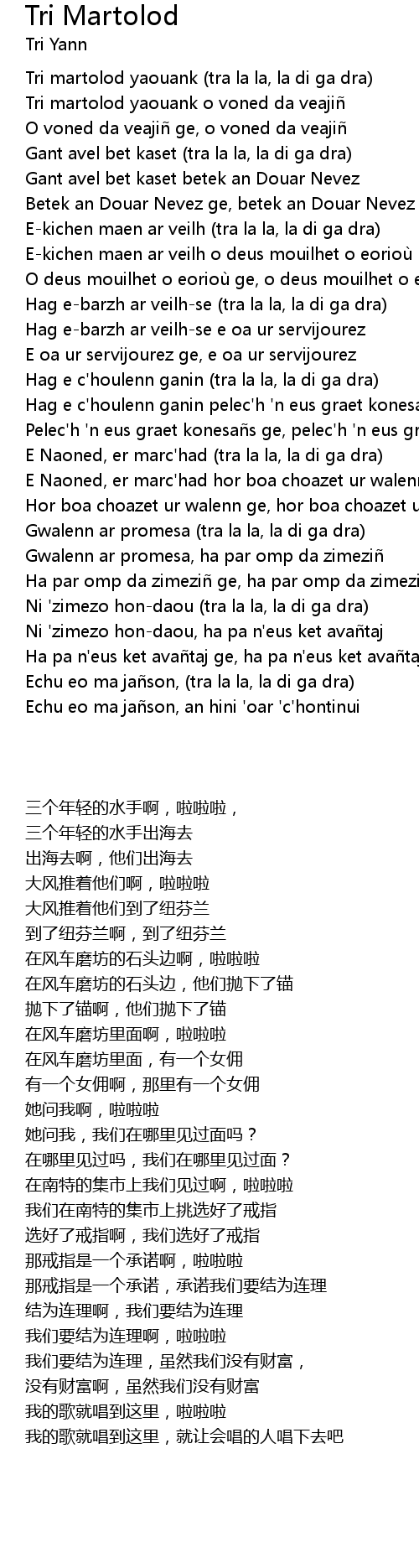 | 歌曲 | Tri Martolod |