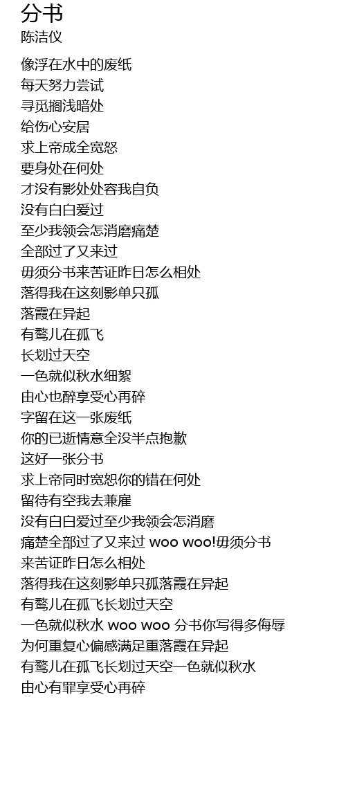| [02:23.39] | 痛楚全部过了又来过 woo woo!毋须分书 |