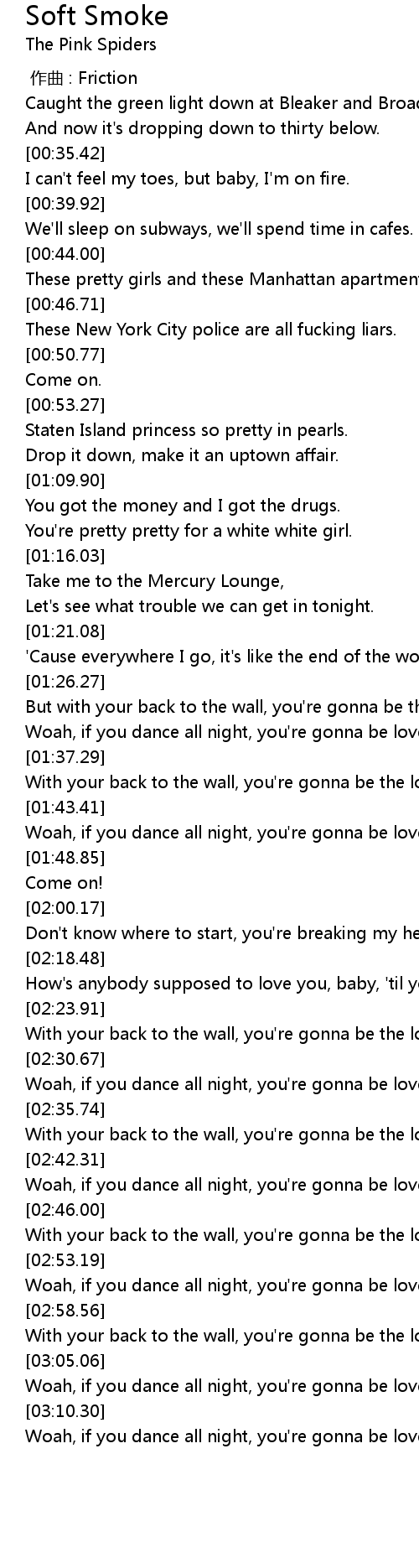 | [01:40.54] | With your back to the wall, you' re gonna be the lonely one. |