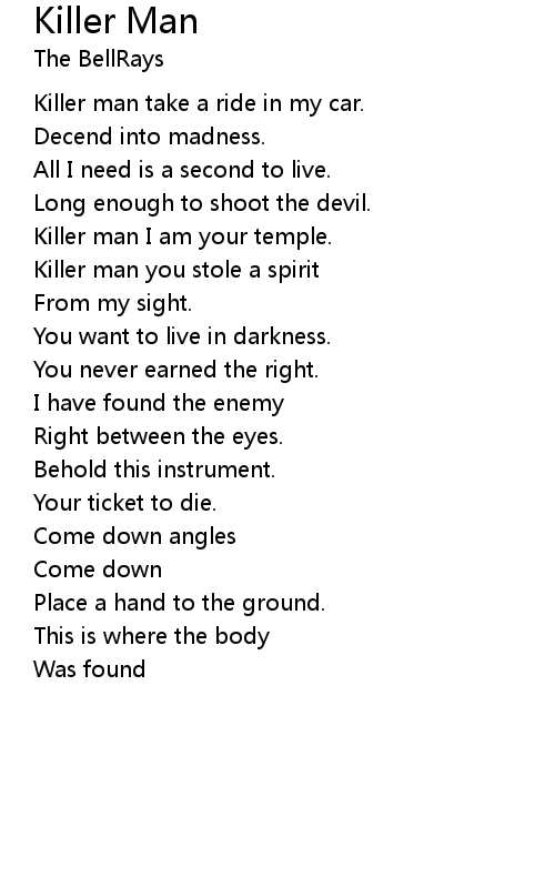 | Killer man take a ride in my car. | |