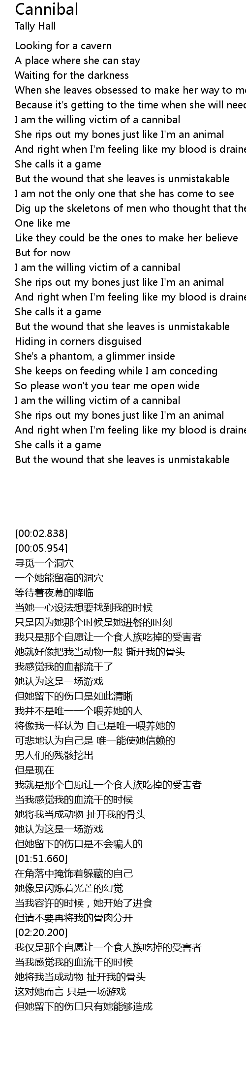 I am the willing victim of a cannibal |