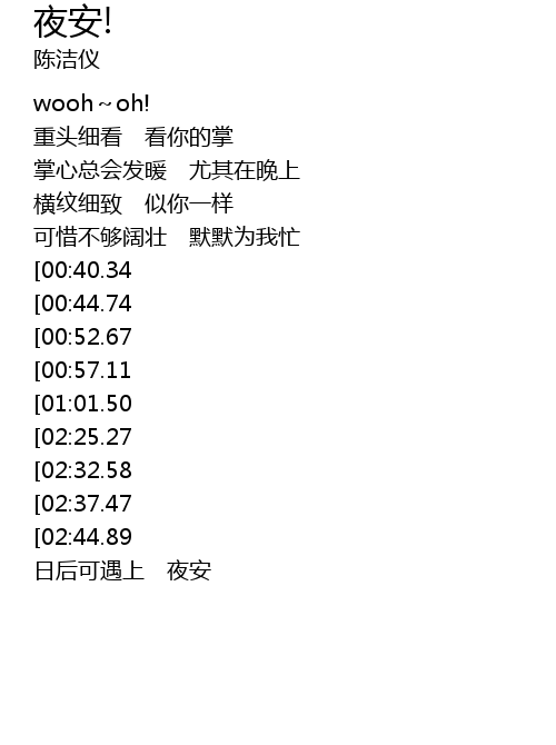 | [00:21.92] | 掌心总会发暖 尤其在晚上 |