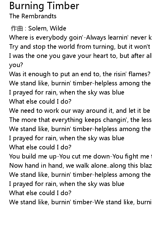 | [03:04.49] | We stand like, burnin' timberWe stand like, burnin' timber |