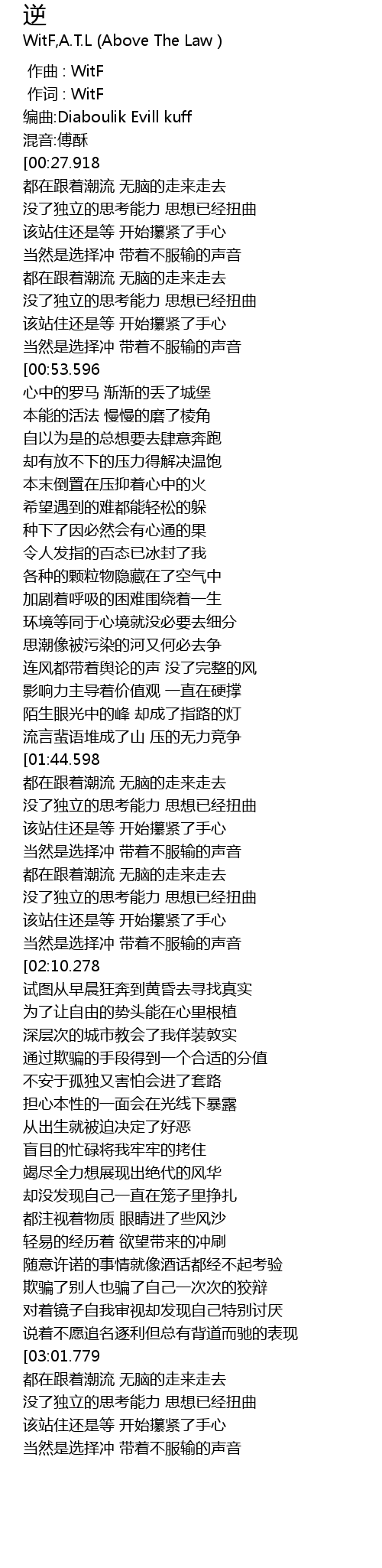 | [03:01.694] | 都在跟着潮流 无脑的走来走去 |