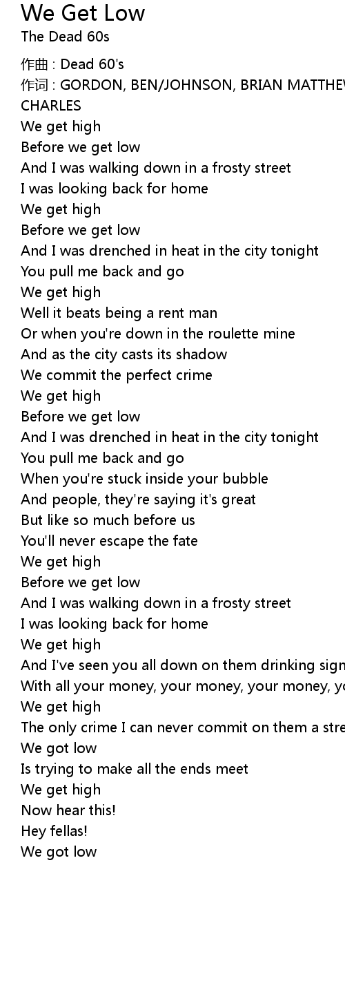 | 歌曲 | We Get Low |