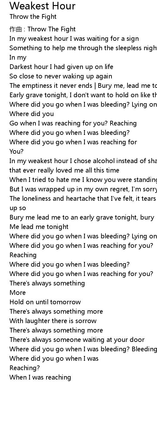 | 歌曲 | Weakest Hour |