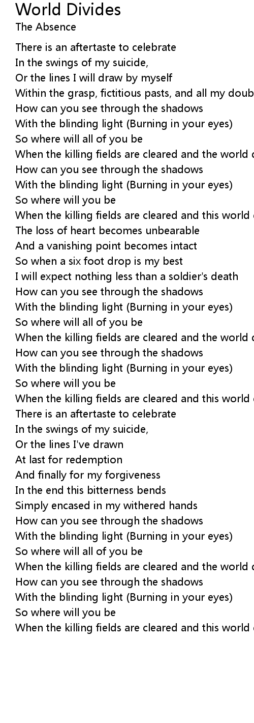 When the killing fields are cleared and this world divides? |