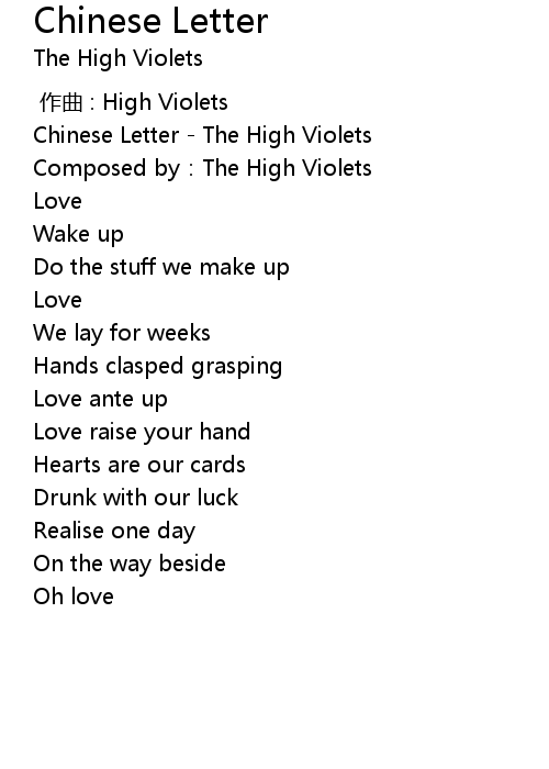 | [00:00.100] | Chinese Letter - The High Violets |