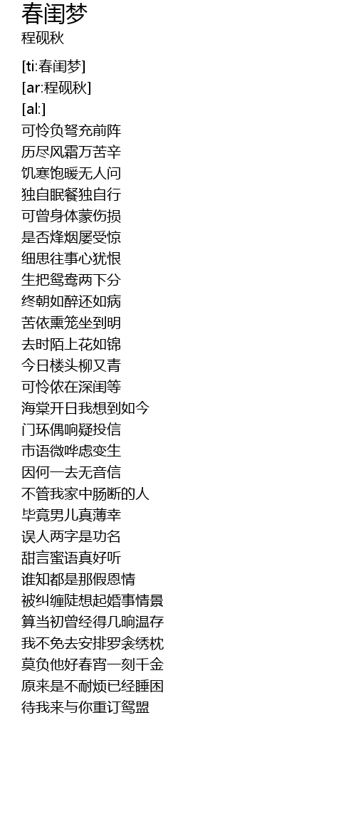 | [05:12.39] | mò fù tā hǎo chūn xiāo yī kè qiān jīn |