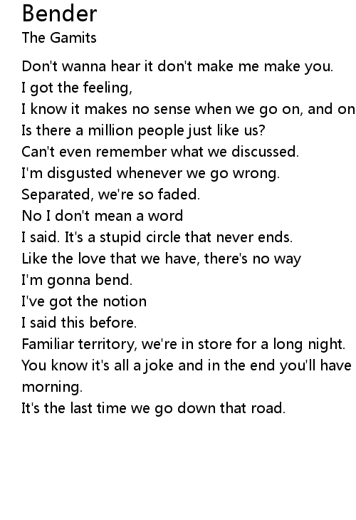 I'm gonna bend. |
