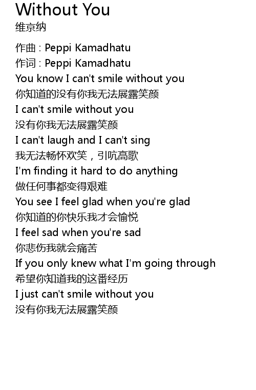 | méi yǒu nǐ wǒ wú fǎ zhǎn lù xiào yán | |