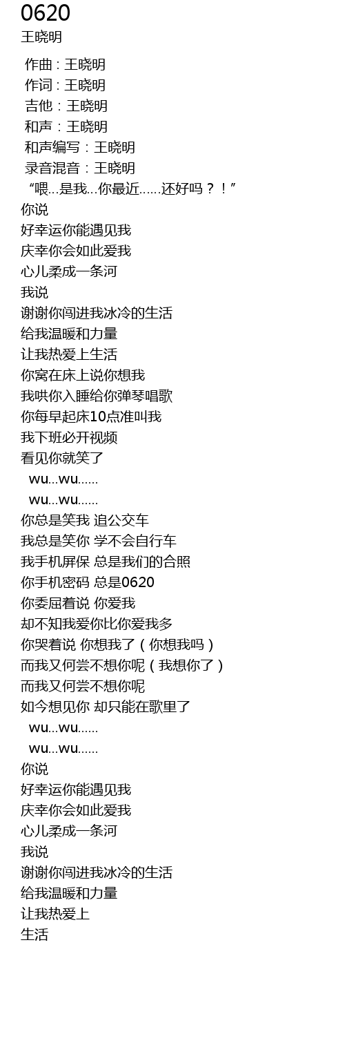 | [02:16.00] | 你手机密码 总是0620 |
