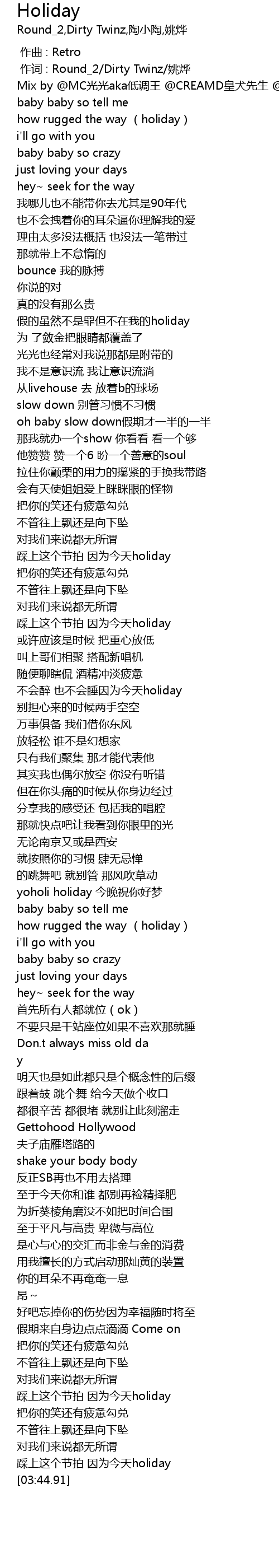 | [00:52.13] | 假的虽然不是罪但不在我的holiday |
