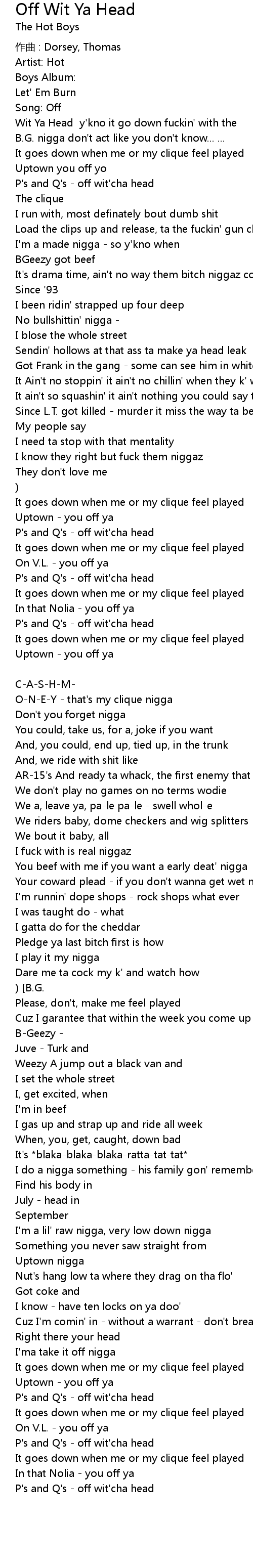 | Wit Ya Head y' kno it go down fuckin' with the | |