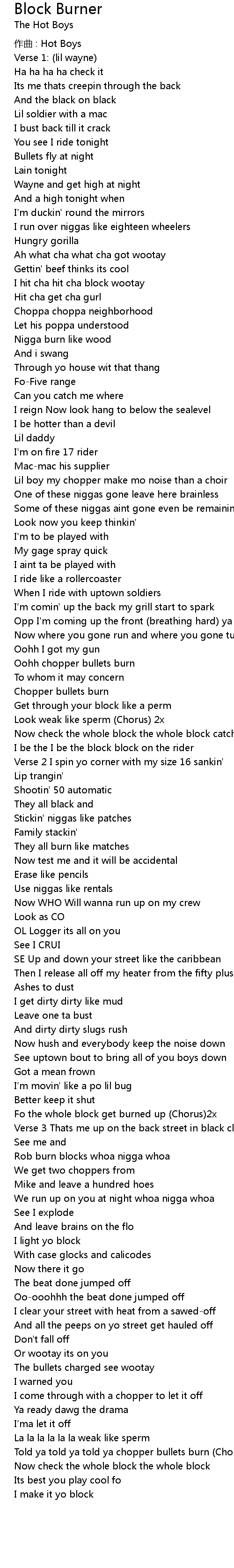 | Told ya told ya told ya chopper bullets burn Chorus | |