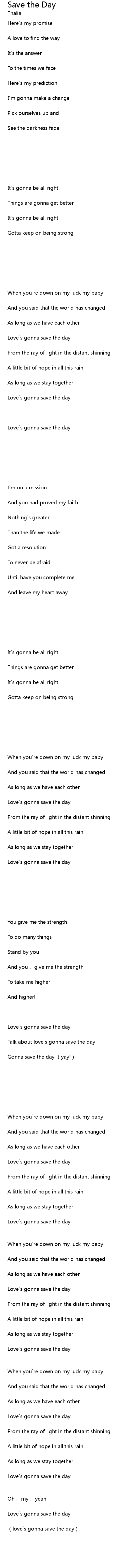 | Love s gonna save the day | |