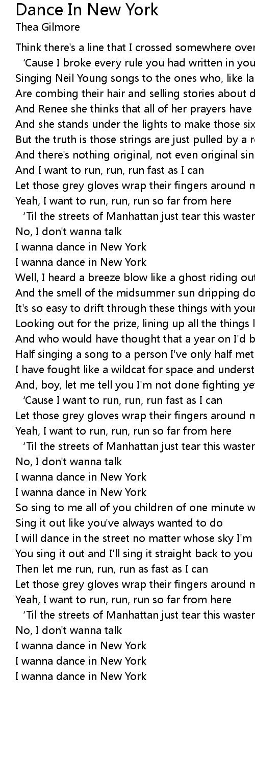 | ' Til the streets of Manhattan just tear this waster apart | |