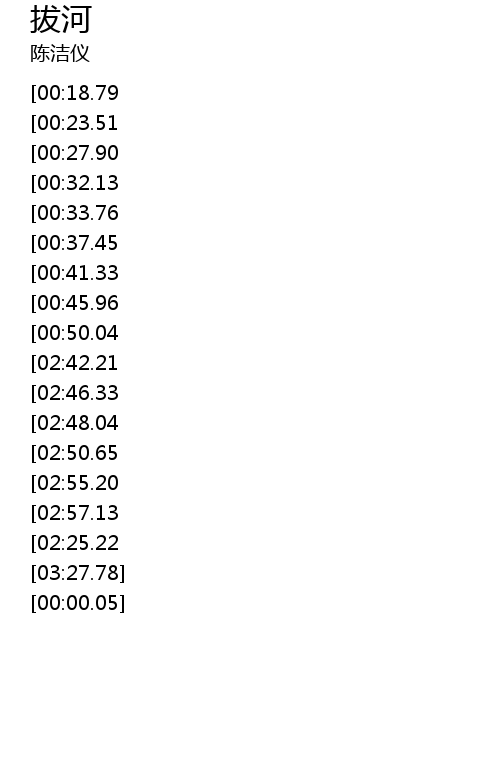 | [03:00.70][02:42.21][02:04.95][00:57.94] | 两颗心倔强的拔河 |