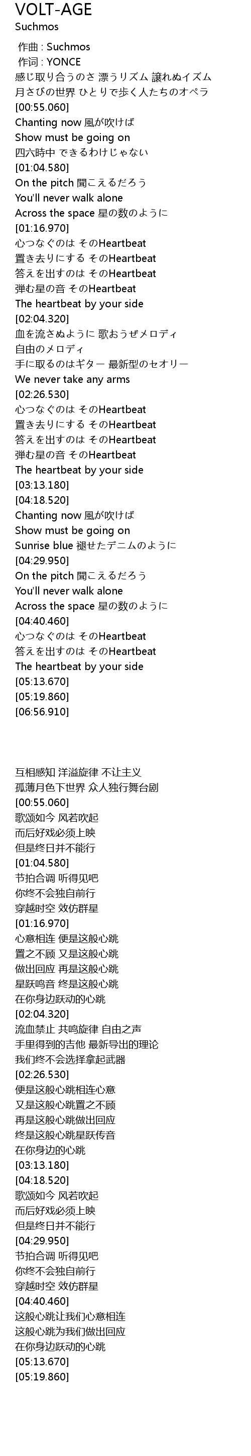 | [02:40.630] | 置き去りにする そのHeartbeat |
