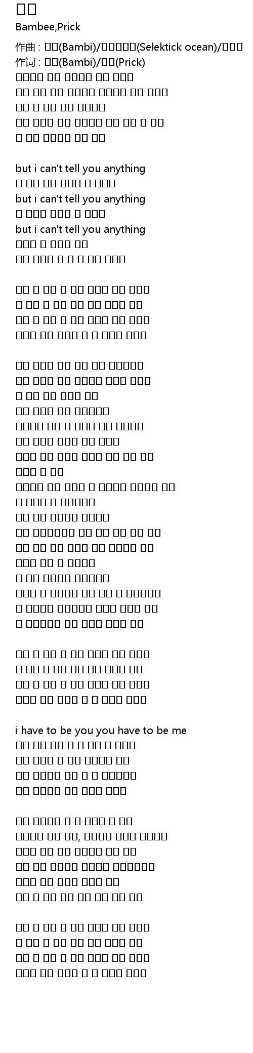 作词 : 밤비(Bambi)/프릭(Prick)