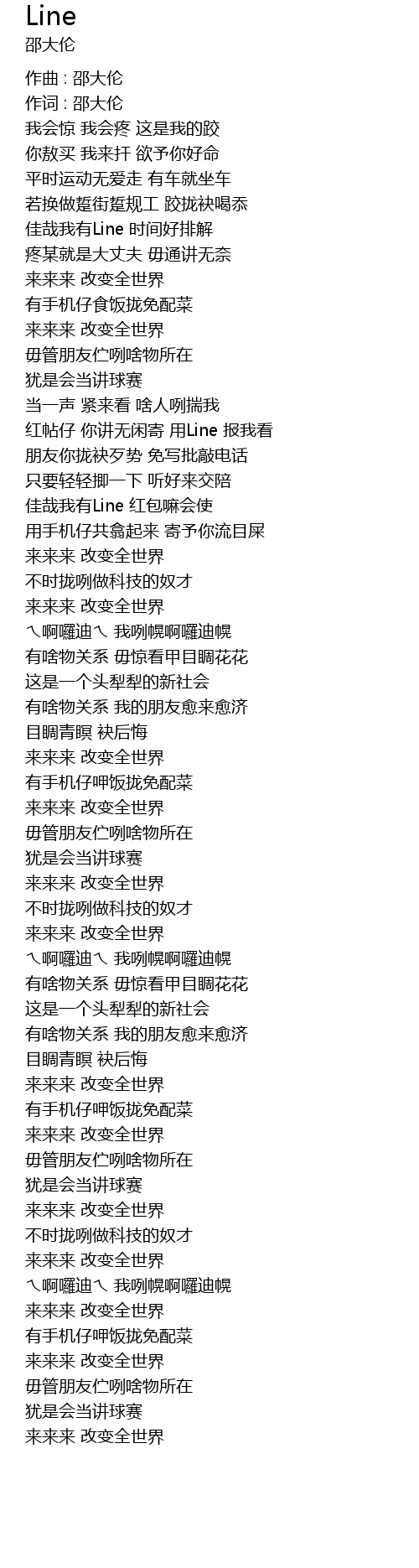| 佳哉我有Line 时间好排解 | |