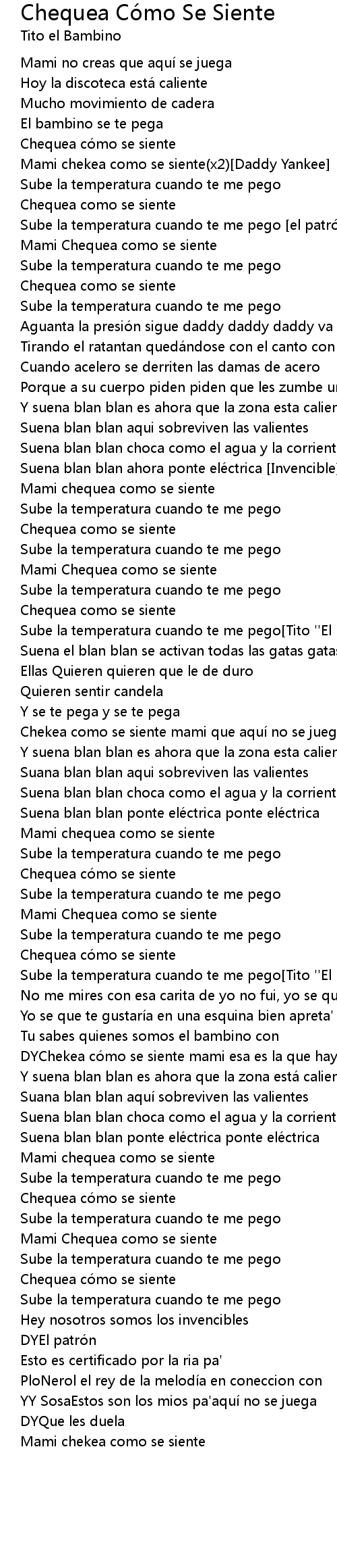 | DYChekea cómo se siente mami esa es la que hay[Daddy Yankee] | |