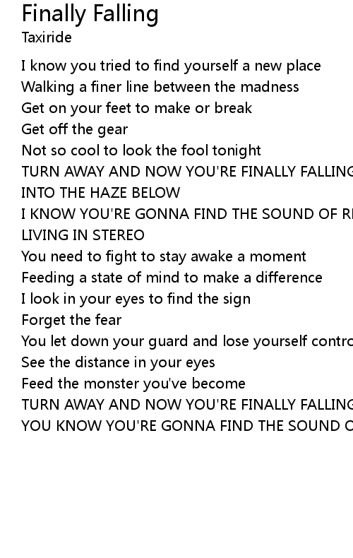 | TURN AWAY AND NOW YOU'RE FINALLY FALLING | |