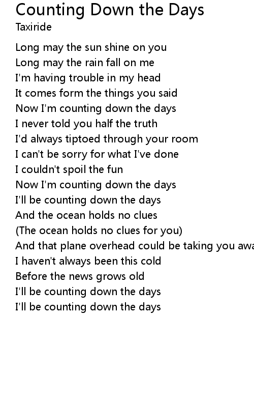 | Now I'm counting down the days | |