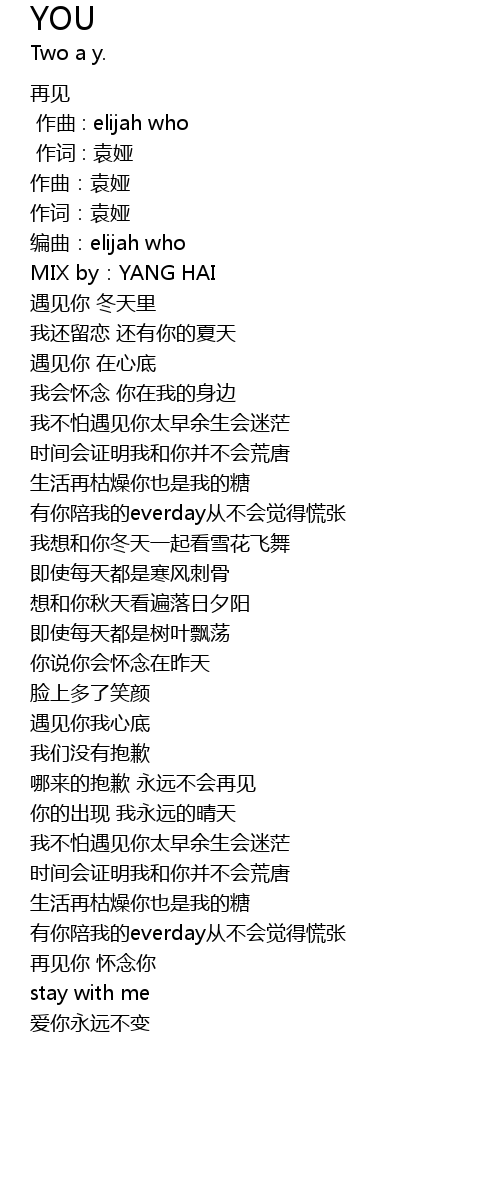 | [01:33.18] | 有你陪我的everday从不会觉得慌张 |