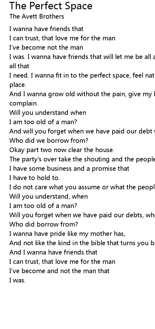 I need. I wanna fit in to the perfect space, feel natural and safe in a volatile place. |