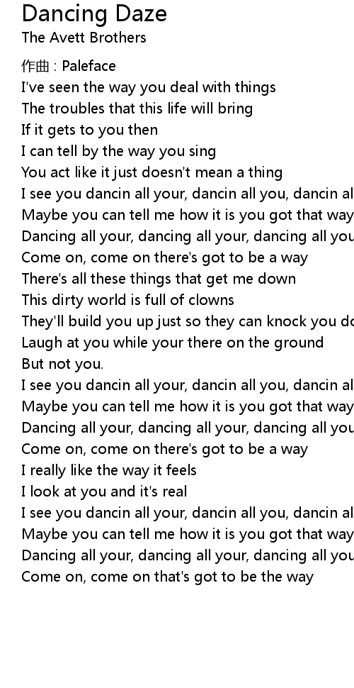 | Dancing all your, dancing all your, dancing all your daze | |