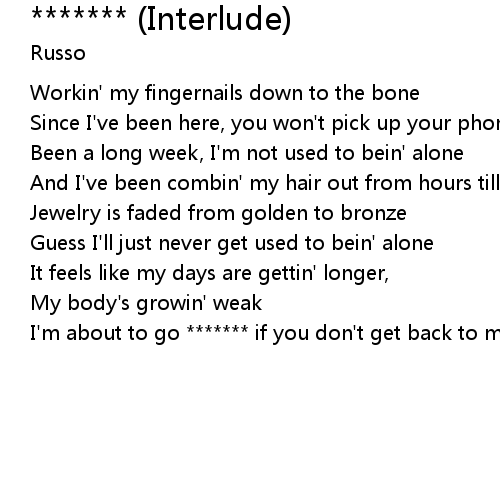 | [00:47.70] | I'm about to go ******* if you don't get back to me |