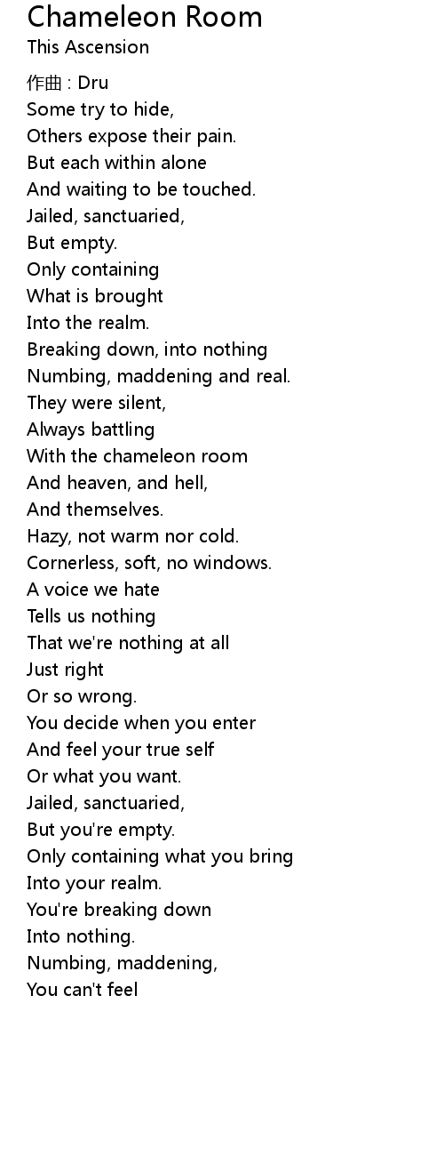 | 歌曲 | Chameleon Room |