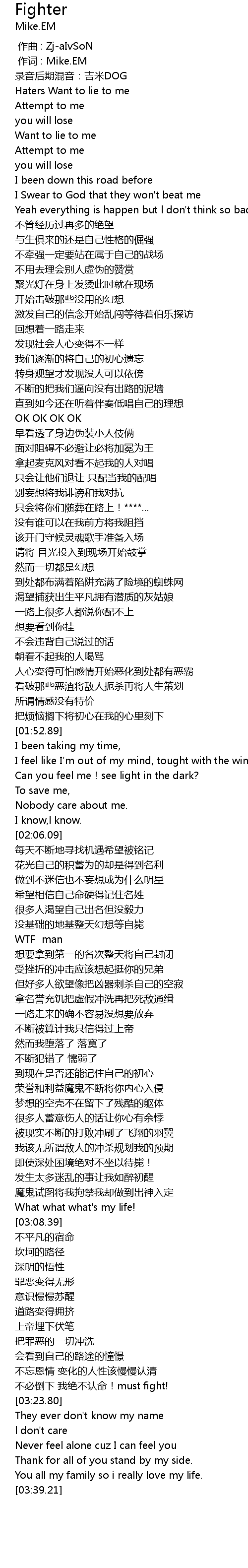 | [00:01.000] | 作词 : Mike.EM |