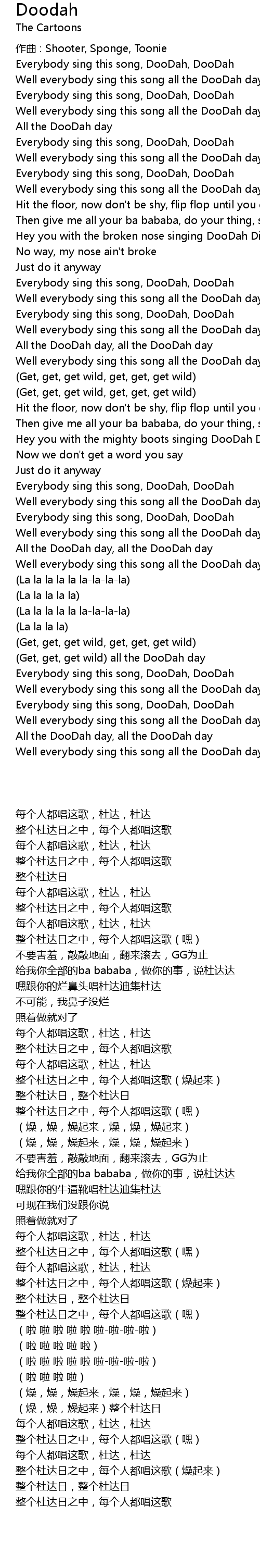| Well everybody sing this song all the DooDah day (hey) | |