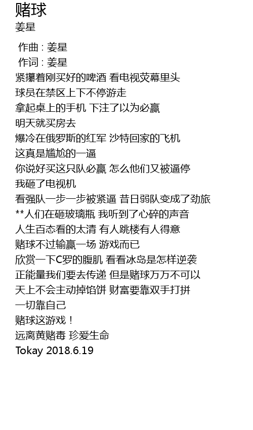 | [01:12.490] | 正能量我们要去传递 但是赌球万万不可以 |