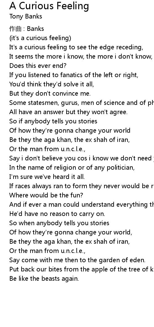 | 歌曲 | A Curious Feeling |