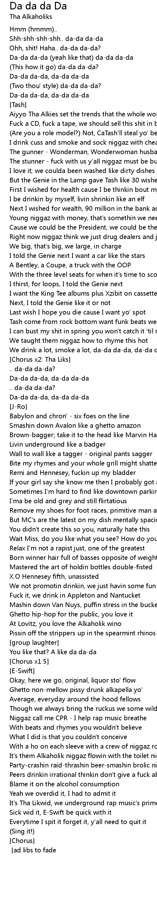 We drink a lot, smoke a lot, da-da da-da, da-da da-da |