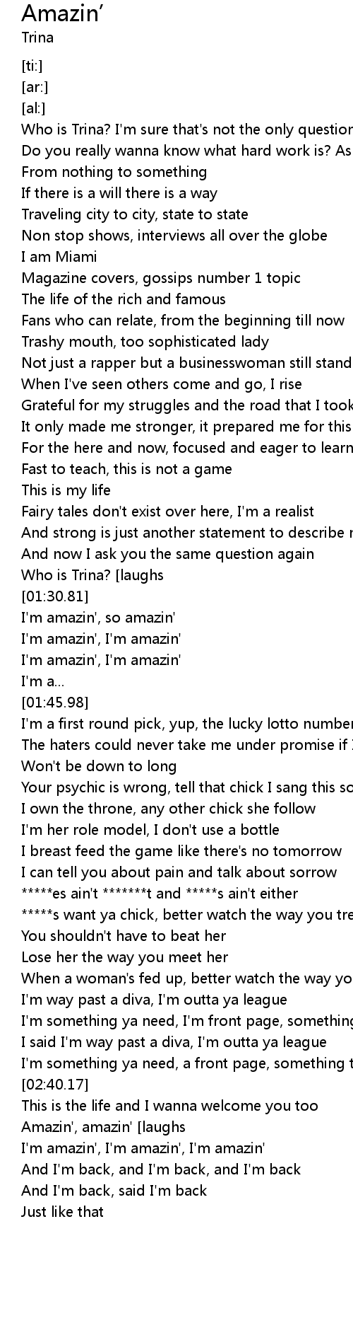 | [00:00.97] | Who is Trina? I'm sure that's not the only question you want answered |