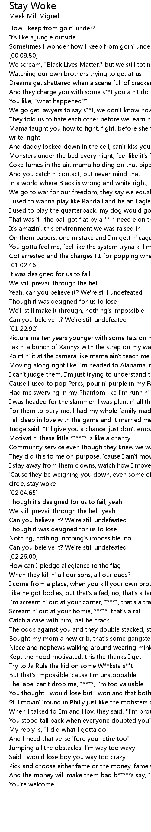 | [02:44.18] | The odds against you and they double stacked, stay woke |