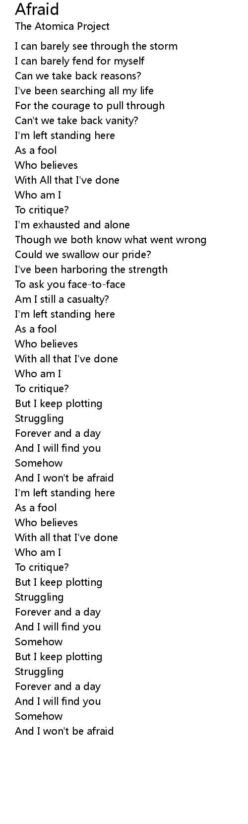 And I won't be afraid |