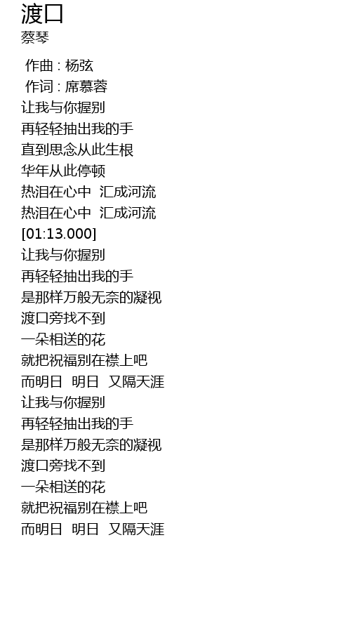 | [01:49.000] | 渡口旁找不到 |