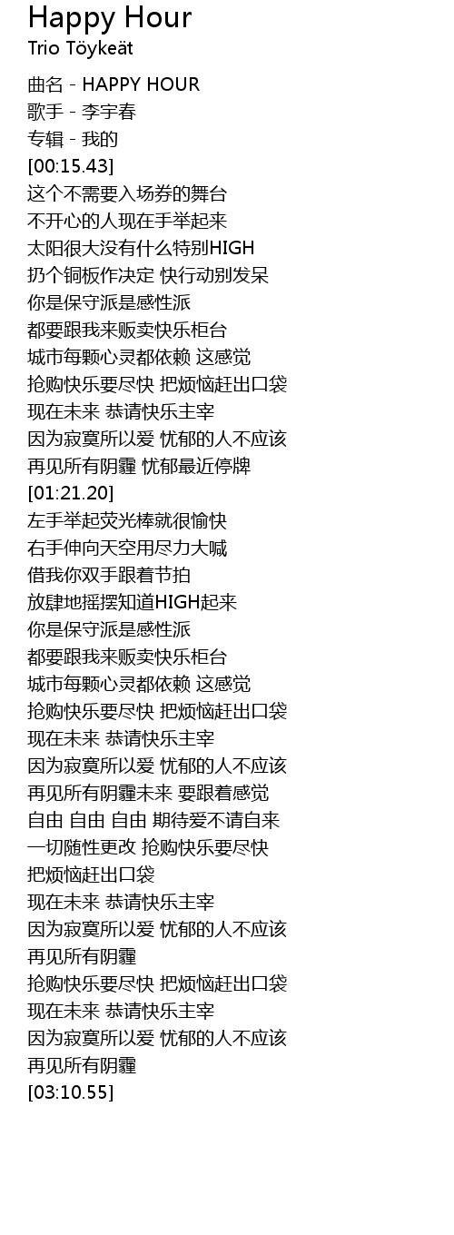 | [00:00.37] | qū míng HAPPY HOUR |