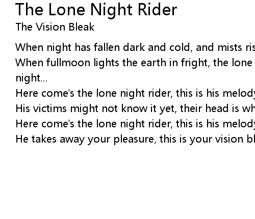 | When fullmoon lights the earth in fright, the lone grim rider chills the night... | |