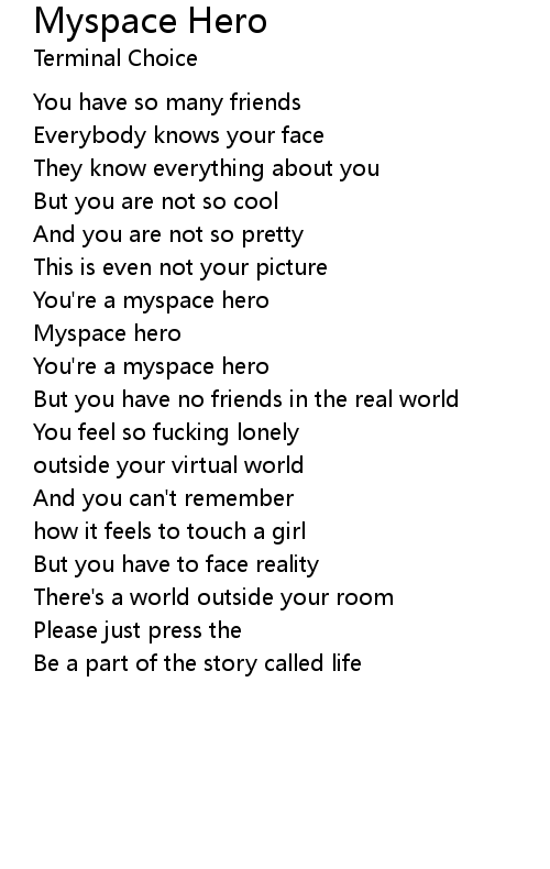 | 歌曲 | Myspace Hero |