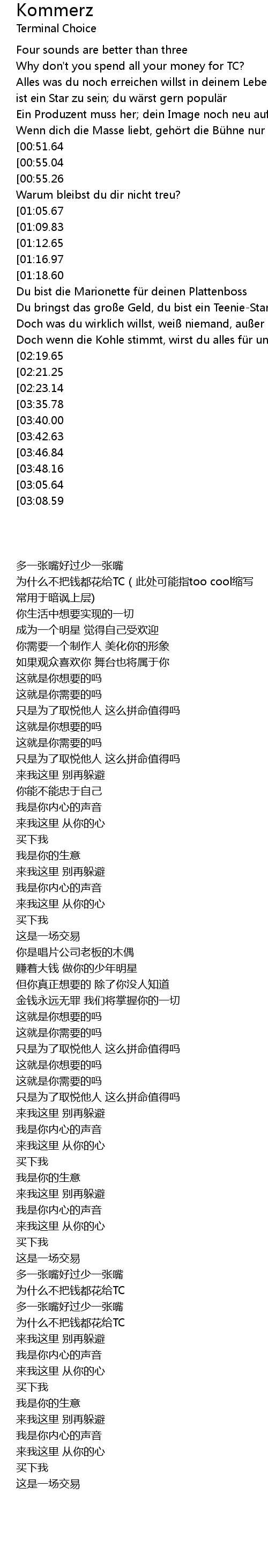 | [04:03.12][03:48.16][03:02.57][02:48.79] | Ich bin Kommerz |